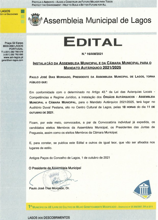 Instalação dos órgãos autárquicos mandato 2021/2025 C.M. Lagos