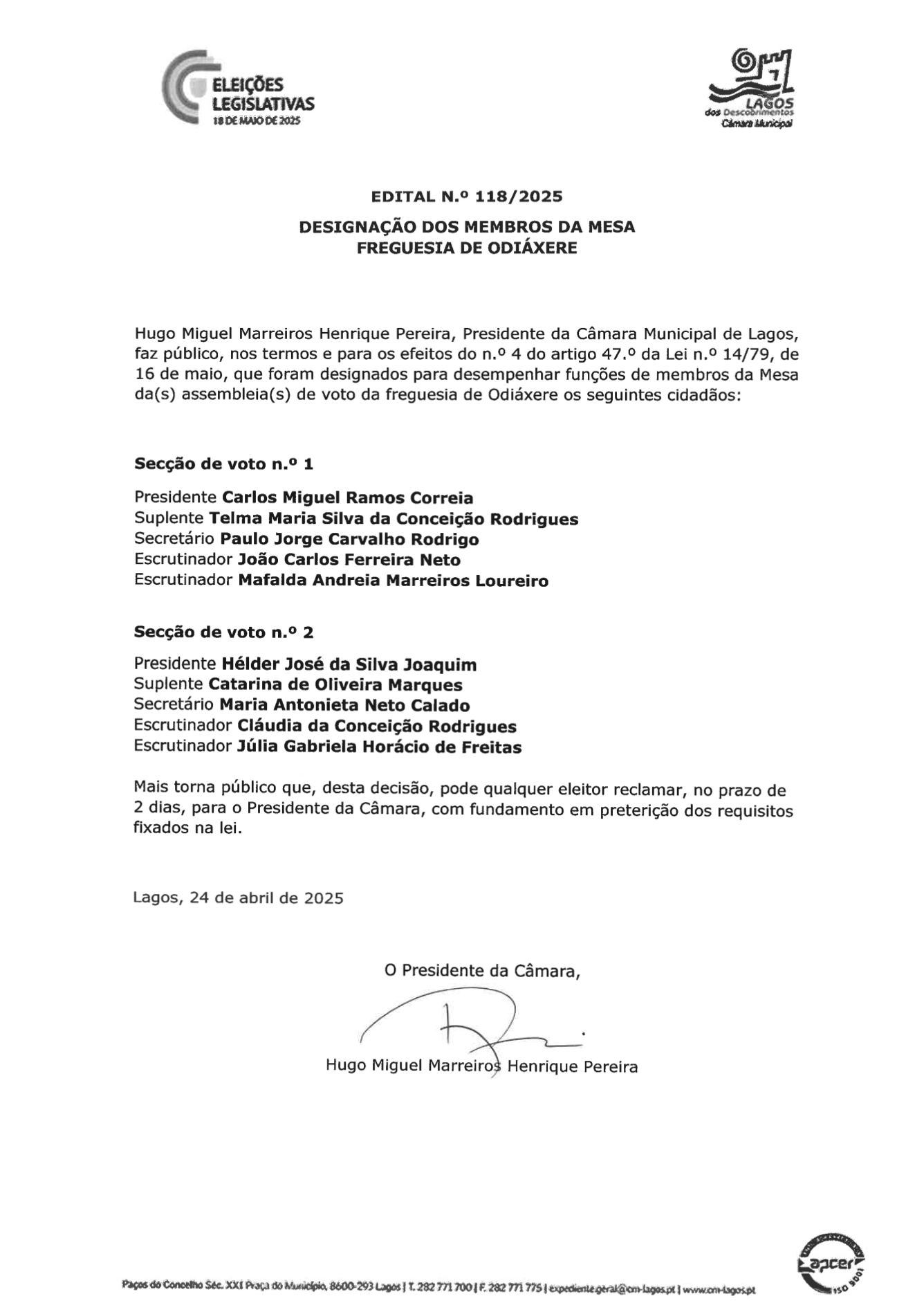 Edital n.º 118/2025 - Designação dos Membros da Mesa - Freguesia de...